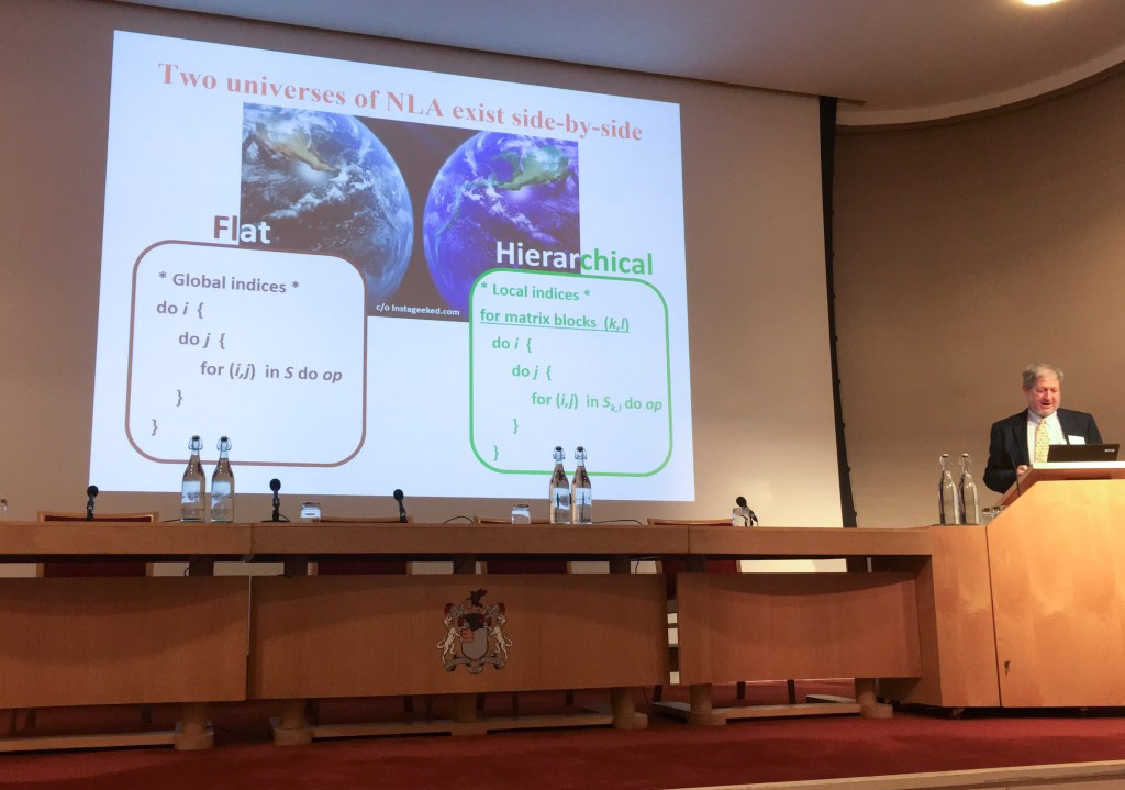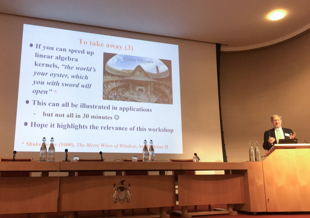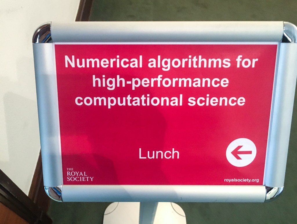 The Royal Society discussion meeting Numerical Algorithms for High-Performance Computational Science, which I organized with Jack Dongarra and Laura Grigori, was held in London, April 8-9, 2019. The meeting had 16 invited speakers and 23 contributed posters, with a poster blitz preceding the lively poster session.