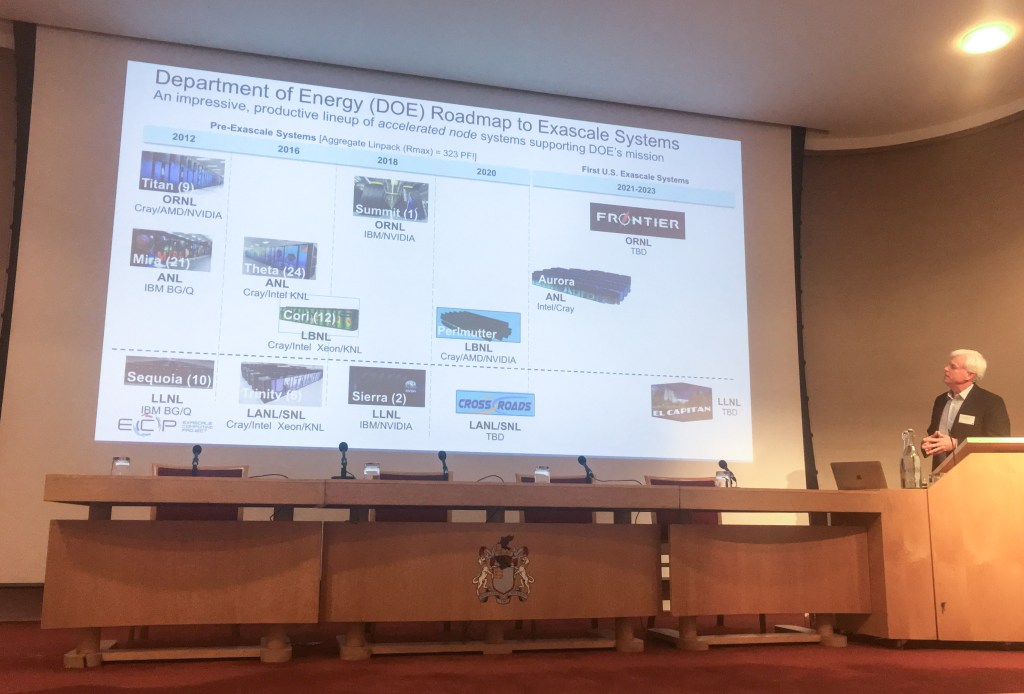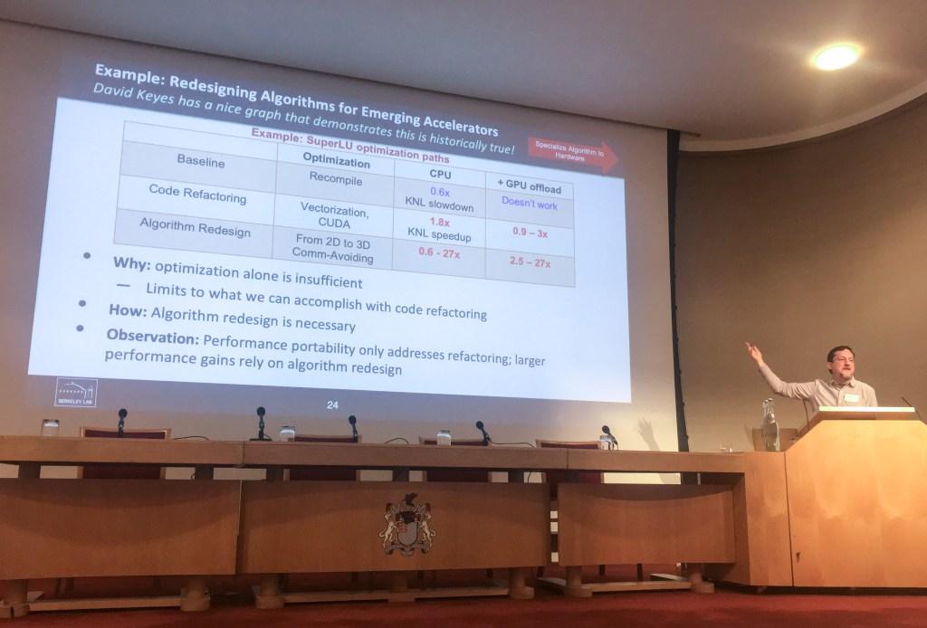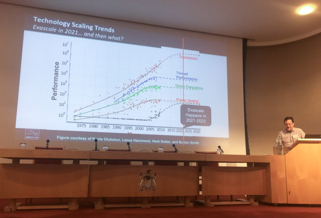 Several key themes emerged across multiple talks, all in the context of today’s high performance computing landscape in which processor clock speeds have stagnated (with the end of Moore’s law) and exascale machine are just two or three years away.