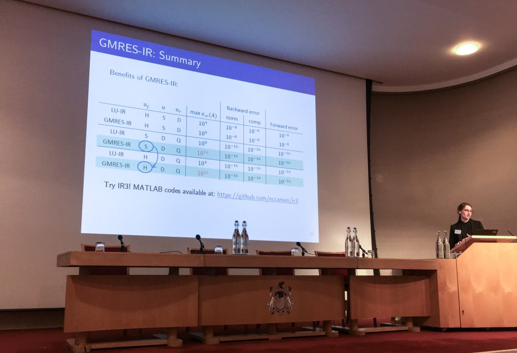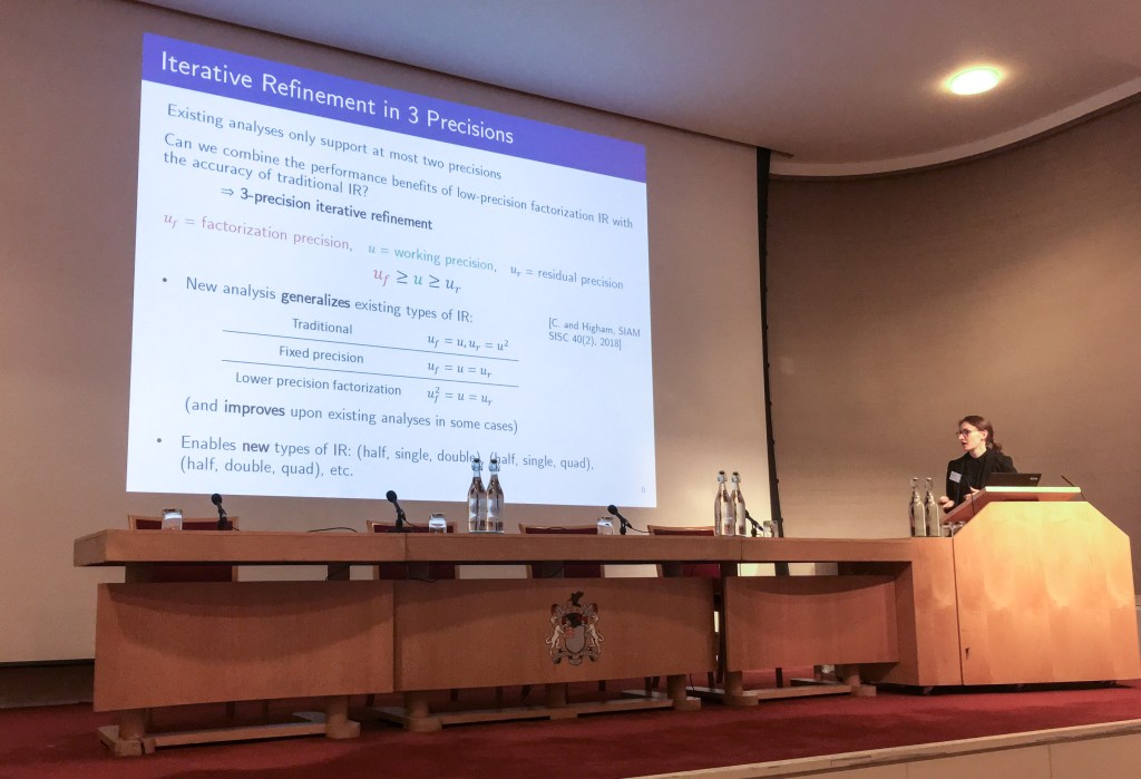Minisymposium description: Reduced precision floating-point arithmetic, such as IEEE half precision and bfloat16, is increasingly available in hardware. Low precision computations promise major increases in speed and reductions in data communication costs, but they also bring an increased risk of overflow, underflow, and loss of accuracy. One way to improve the results of low precision computations is to use stochastic rounding instead of round to nearest, and this is proving popular in machine learning. This minisymposium will discuss recent advances in exploitation and analysis of reduced precision arithmetic and stochastic rounding.